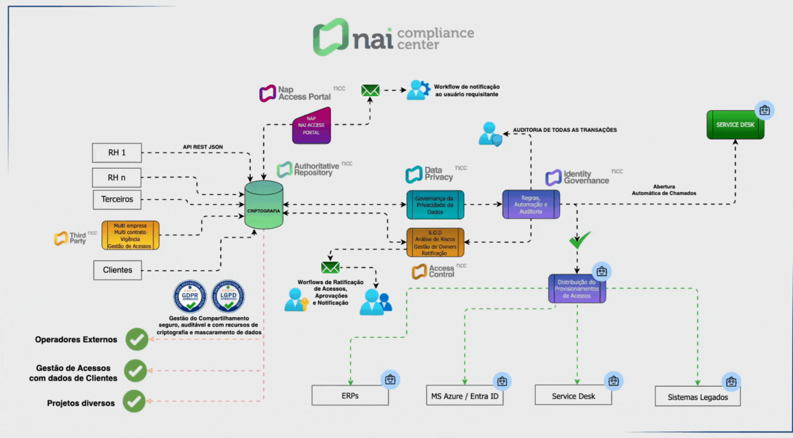 Os módulos da família IGA da Plataforma Nai Compliance Center (NCC) oferecem uma solução completa, inteligente e escalável para transformar a gestão de identidades e acessos da sua empresa.